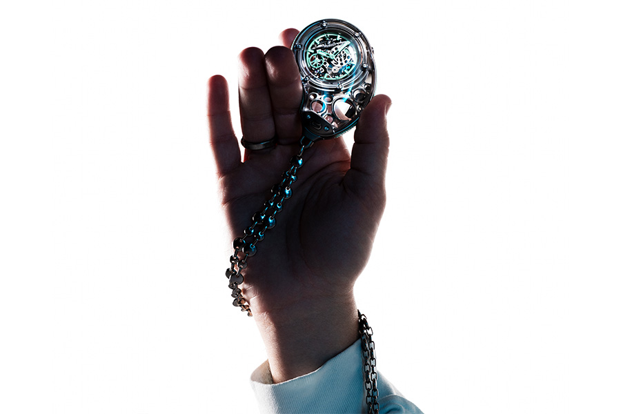 We know what you’re thinking: Who wears a pocket watch in 2024? But kindly bear with us for a moment: Hublot teamed up with influential American contemporary artist Daniel Arsham on a special handheld timepiece that looks like nothing you’ve ever seen before. They designed the pocket watch in the shape of a droplet that would fit comfortably in the palm of your hand. You can also use it as a table clock on its titanium and mineral glass stand. Fashioned from titanium and rubber, its case is openworked to reveal a lace-like structure, while its dial is transparent, revealing the hand-wound MECA-10 movement with 240 hours of power reserve. The Droplet has an easy-changing, one-click strap system to quickly convert it from a pocket watch to a table clock to a necklace. In short: If this doesn’t change your mind about pocket watches, we’re not sure what will.