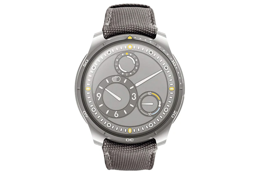 Ever since it debuted its first prototypes at the now-defunct watch show Baselworld in 2010, Belgian watchmaker Ressence has wowed collectors with its incredible wares, which functionally meld mechanical watchmaking with electromechanical regulation in seamless, futuristic designs. (Its ROCS, or Ressence Orbital Convex System, is driven by an otherwise ETA 2824-2 movement but looks like something from the heads-up display of a fighter plane.) The Type 5L is perhaps the boldest expression of the Ressence timepiece yet: Housed in a titanium case, it features an oil-filled upper dial that cancels out refraction underwater, ensuring that the time is always visible during dives. (Yes — this thing is a 100m-water-resistant dive watch.) Additionally, SuperLumiNova liberally coats the entire dial, so it glows like one of those stars you stuck to your ceiling as a kid. To be sure, few other brands can come close to the ingenuity at play at Ressence.