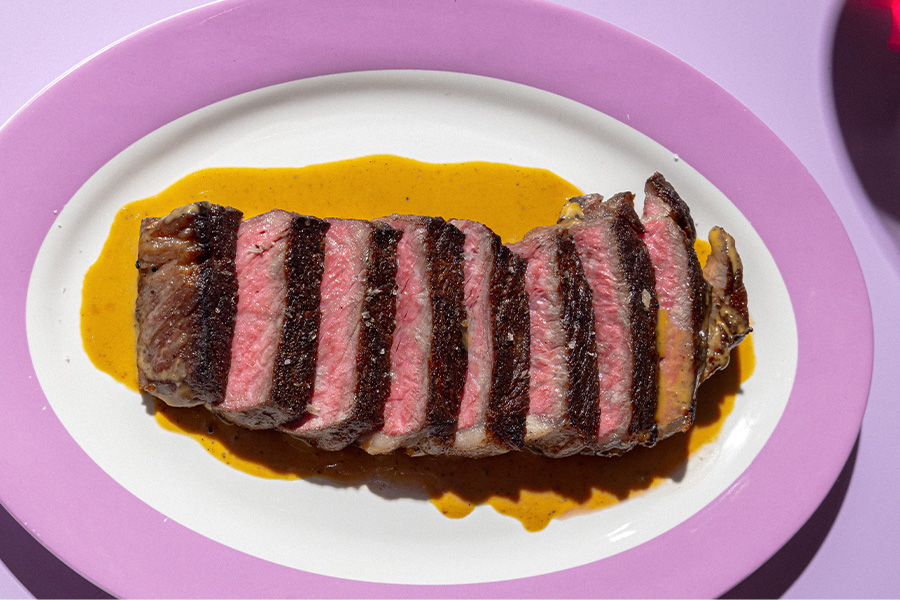 Rethink your stereotypical Cabernet and steak pairing and serve a Pinot Meunier–dominant Champagne. “Pinot Meunier has a fruit density and acid structure that can stand up to a piece of steak and cut through the fat,” says Kenneth Crum, managing partner and beverage director of Heroes & Pearl Box in NYC. Krum advises an aged steak for the ultimate pairing as Champagne’s subtle savory quality “is killer with the umami flavors of an aged steak.”