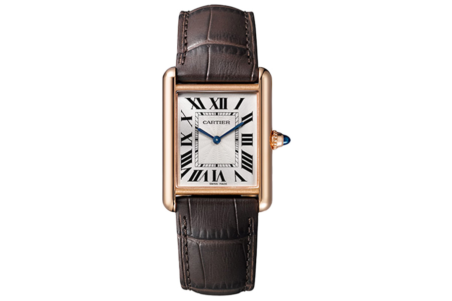 Perhaps no timepiece better embodies the essence of luxury dress watches for men than Cartier’s Tank Louis Cartier. From its signature rectangular form, which encapsulates the face and the lugs, to its slim profile, the Tank Louis Cartier speaks primarily to its wearer, who, upon further inspection, can observe its nuances. For this model, those manifest as a rose gold case, a beaded crown set with a sapphire cabochon, a silvered beaded dial, and an Ardillon buckle in rose gold that matches the case. The Roman numerals and sword-shaped hands commit to the design introduced by Louis Cartier in 1917. Inside, a hand-wound mechanical movement powers the piece (learn more about this mechanism in our guide to the different types of movements).