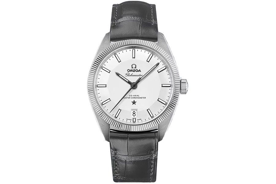 With a distinct, angled fluted bezel, surrounding an equally uncommon opaline silver “Pie Pan” dial (reminiscent of the first 1952 Constellation model), Omega’s Constellation Globemaster differentiates itself from other luxury dress watches for men — though it maintains the same sense of refinement. The dial incorporates two contemporary facets: a blackened star (a signature of the Constellation line) and hands and indexes filled with luminous Super-LumiNova. Within the 39mm stainless steel case is Omega’s self-winding Co-Axial Master Chronometer Calibre 8900, a feat of modern engineering.