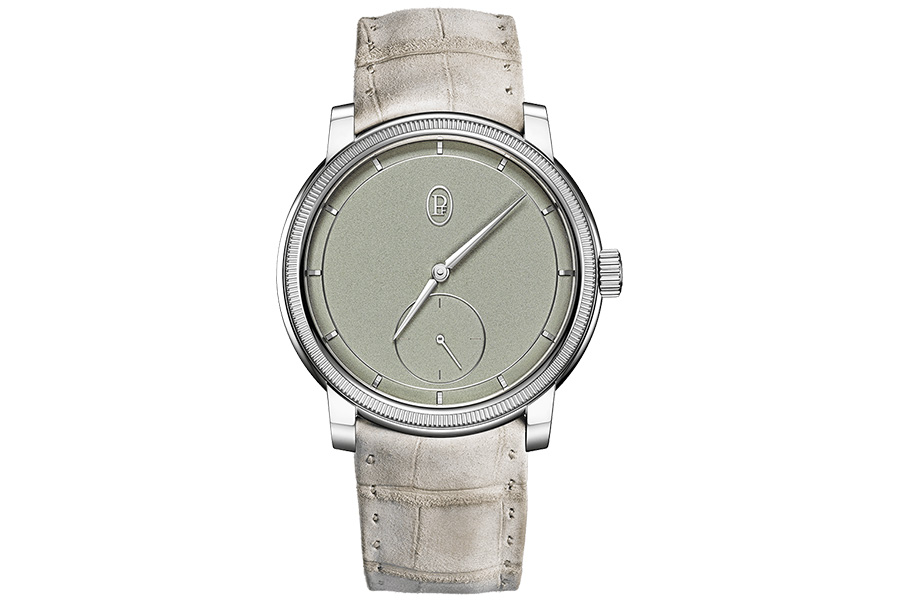 True to the requirements of a dress watch, the finessed details of the Toric Petite Seconde Platinum, a 2024 revival of an early piece from the repertoire of watchmaker Michel Parmigiani, do not aim to distract but instead reveal themselves through careful consideration. This includes the hand-grained gold “chevé” dial and its mesmerizing textured appearance. The dial is set within a 40.6mm platinum case, enhanced by a knurled bezel. The 18K gold rhodium-plated indices and a minimal small seconds subdial round out the aesthetic attributes, along with a tan alligator strap. Inside is Parmigiani Fleurier’s own PF780 manual-winding movement.