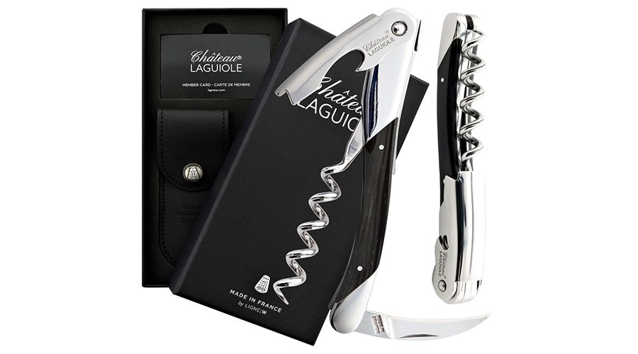 If you want to get them a high-end corkscrew, this version from Chateau Laguiole is one of the best options. It has all the necessary features for opening wine bottles like a pro. It’s made in France and comes with a leather belt sheath in a gift box, ready for gifting.
