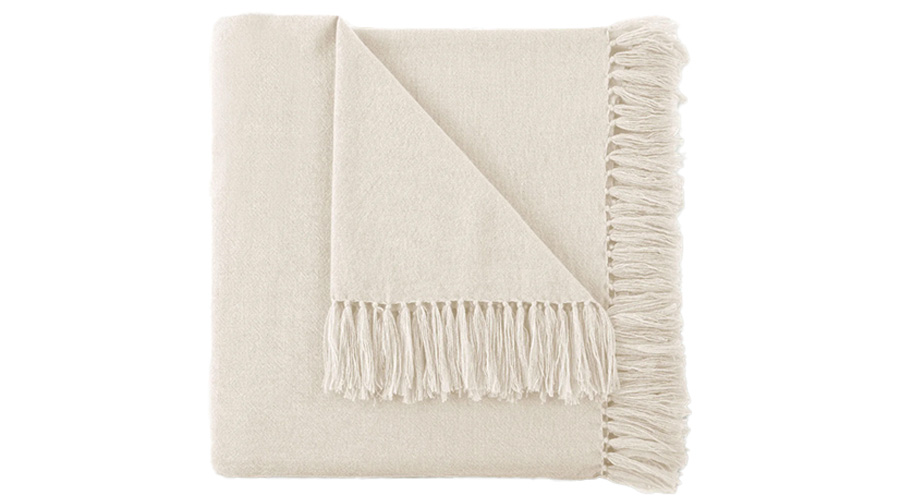 This cashmere throw blanket from Peacock Alley is one of the coziest luxury home gifts. It’s made in Italy with 100% cashmere and has fringed edges. It comes in creamy beige, muted blue, and olive green colors.