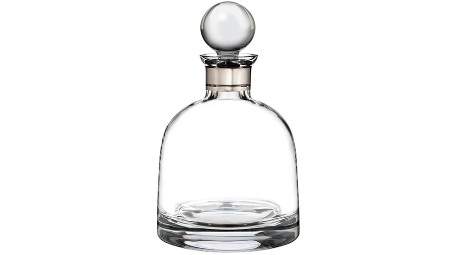 This modern decanter from Waterford is a stunning vessel for displaying their favorite whisky or whiskey. It has a circular stopper and an elegant, rounded silhouette.