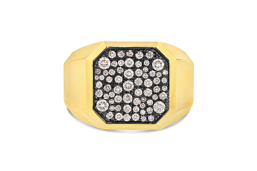 This isn’t your typical signet ring; it has an octagon silhouette with an empty center where there’s commonly a crest. It’s made by State Property, a fine-jewelry brand based in Singapore that prides itself on marrying modern design and traditional craftsmanship, yielding stunning masterpieces like this ring, which exposes the wearer’s skin (surrounded by two rows of diamonds, of course!).