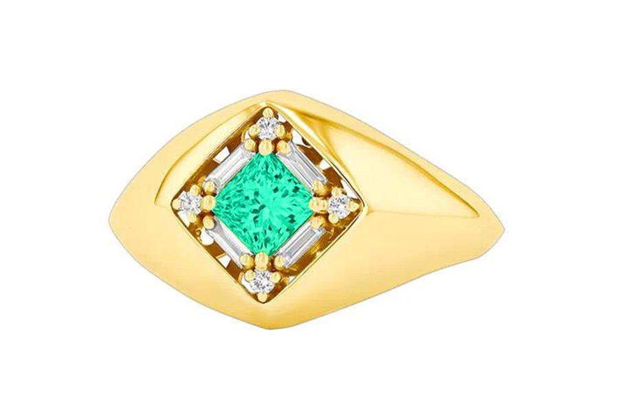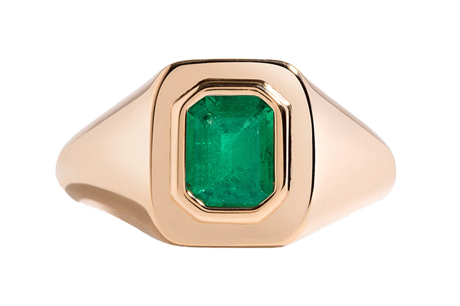Greenwich St. Jewelers signet ring in 18K yellow gold with a 1.1-carat emerald, $5,500