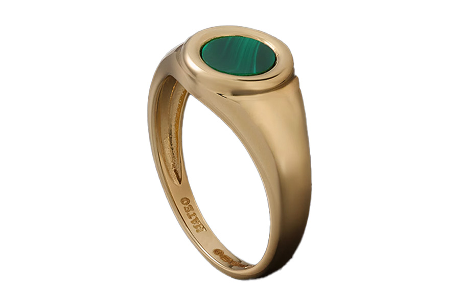 Mateo signet ring in 14K yellow gold with malachite, $1,150